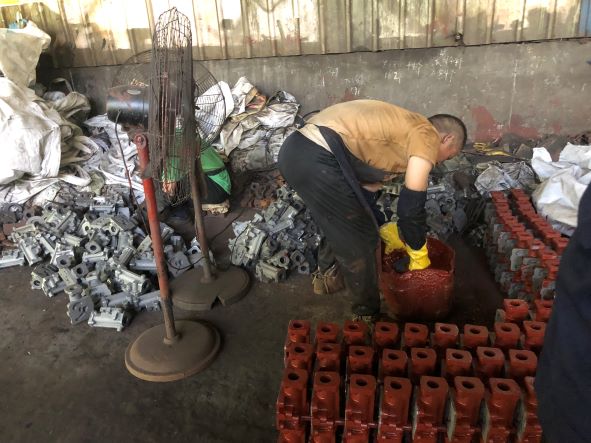 該企業(yè)主要生產(chǎn)鐵鑄件,生產(chǎn)過程中主要涉及制模、熔煉、吊運(yùn)、澆鑄、浸漆、焊接切割等作業(yè),主要生產(chǎn)設(shè)備為造型機(jī)、射芯機(jī)、中頻爐、澆包、拋丸機(jī)、起重機(jī)等,主要生產(chǎn)原料為廢鐵、生鐵、硅鐵、錳鐵等。